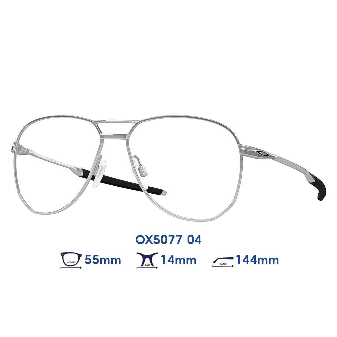 Gọng kính OAKLEY OX5077 04 sở hữu thiết kế tinh tế, gọng kim loại màu bạc thanh lịch, mang lại cảm giác nhẹ nhàng và thoải mái khi đeo. Phù hợp với nhiều phong cách, từ công sở đến đời thường.