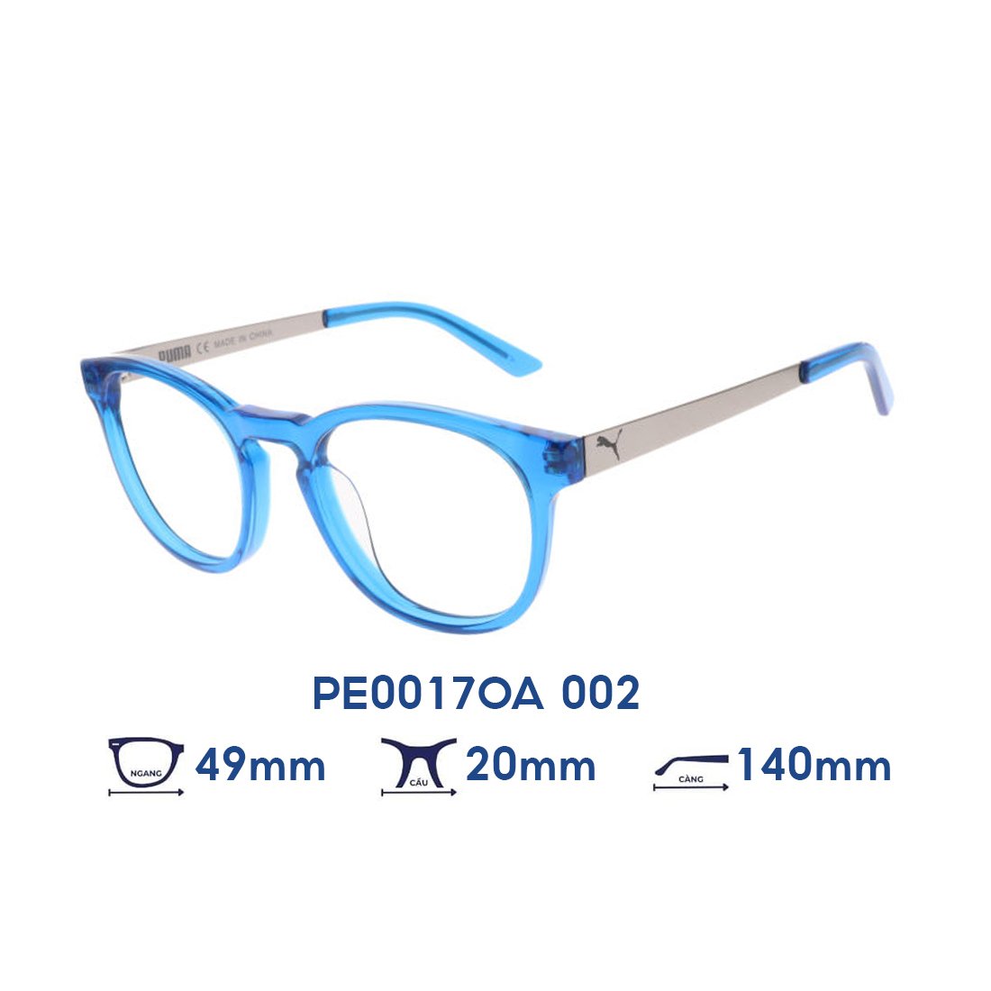 👓 Gọng kính PUMA PE0017OA 002 – Màu xanh dương – Size 49-20-140