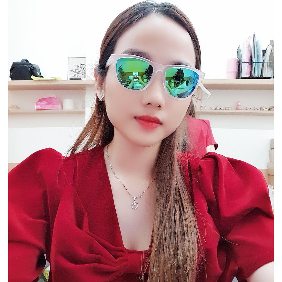“Chiếc kính trắng trong cực kỳ thời trang, đi chơi ban ngày hay buổi tối đều đẹp. Nhìn rất khác biệt.” – Khánh My