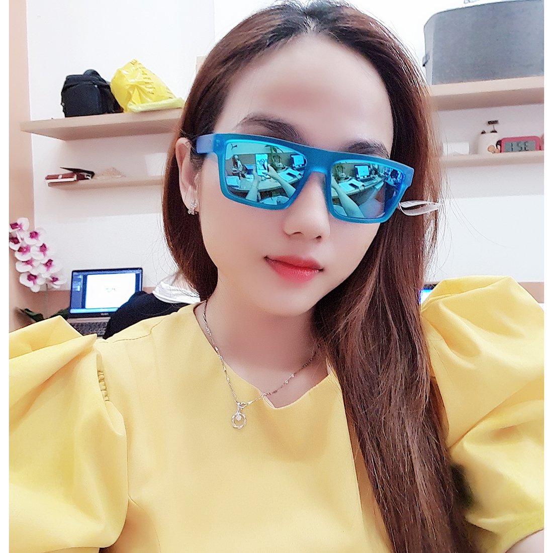 “Màu xanh ngọc rất nổi bật, hợp đi chơi và đi biển. Tròng kính chống chói tốt, nhìn rõ ràng.” – Khánh Linh